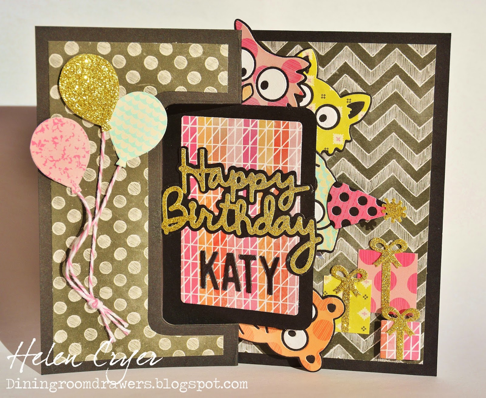 I used the Rectangle Pull Card die, with a bunch of balloons on the front flap. (I used the balloon from the Props 2 set, with the ears trimmed off.)
